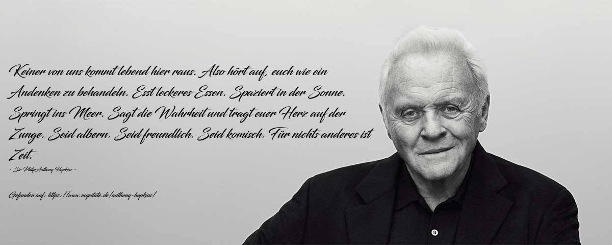 Und Oh Gott … wie viel Zeit verbringen wir mit Dingen, die uns nerven, mit Menschen, die wir nicht mögen? Wie vollkommen bekloppt das ist! Vor Kurzem bin ich auf ein Zitat von Anthony Hopkins gestoßen, das mich genau daran erinnert hat.