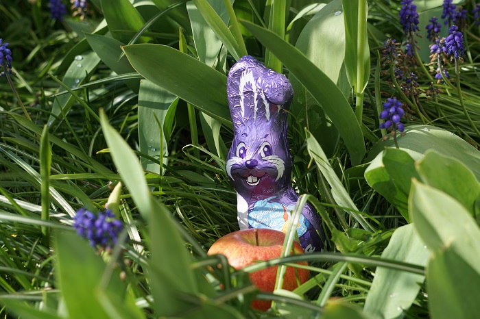 vergeht kein Osterfest, an dem ich nicht an diesen einen Hasen denke. Überhaupt denke ich sehr oft daran, dass alles, was man zu sich nimmt, unwiderruflich gegessen wurde. Jede Kalorie, die ich zu mir nehme, würde sich nicht in meinem Gewicht widerspiegeln, hätte ich sie einfach nie gegessen. Hätte ich also dieses Schmunzelmonster nicht gegessen, hätte ich genau heute möglicherweise einen halbes Gramm weniger auf den Hüften. Und das gilt für jede noch so erdenkliche Mahlzeit. Eigentlich ist es schrecklich, denn hat man einmal damit angefangen, kommt man da einfach nicht mehr raus. Genauer betrachtet nimmt man sich mit diesen Gedanken natürlich jeden Genuss am Essen und ein großes Stück Lebensqualität. Es ändert jedoch nichts an der Tatsache an sich. Hin und wieder gelingt es mir, diese Sichtweise zu verdrängen und meinen Milka-Hasen oder Schokonikolaus oder was auch immer fast ganz ohne schlechtes Gewissen zu essen. Und manchmal traue ich mich sogar, es ein klitzekleines Bisschen zu genießen. Äpfel hingegen hasse ich immer noch wie die Pest.