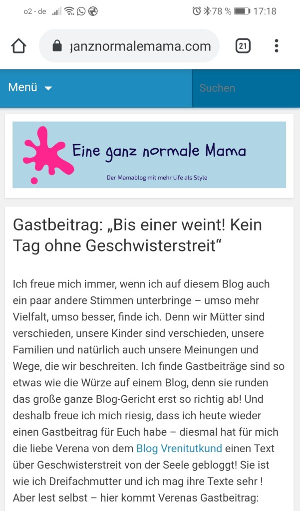 Bis einer weint! Kein Tag ohne Geschwisterstreit – Mein Gastbeitrag beim Blog „Eine ganz normale Mama“