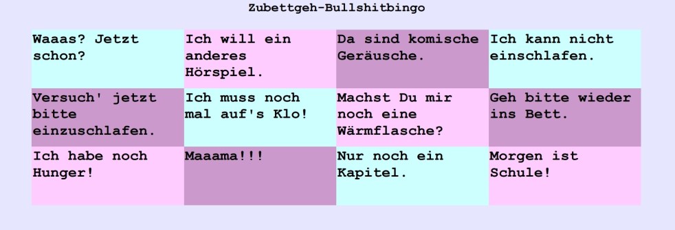 Das Zubettgeh-Bullshitbingo