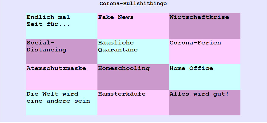 Das Corona Bullshitbingo – Teil 2 – oder Meine Gedanken und Ängste zu diesem ganzen Wahnsinn